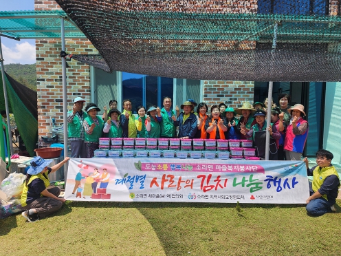 소라면 지역사회보장협의체가 후원하고 마을복지봉사단원들의 재능 기부를 통해 진행된 이날 행사에서 새마을협의회와 소라면 10개 마을복지봉사단은 열무김치 200박스를 담가 독거노인 등 취약계층 200가구에 직접 방문, 전달했다.