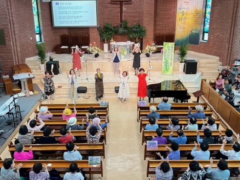 ![]() 노인대학(압해 중앙 성결교회)을 방문하여 노인인지활동교육 중 |