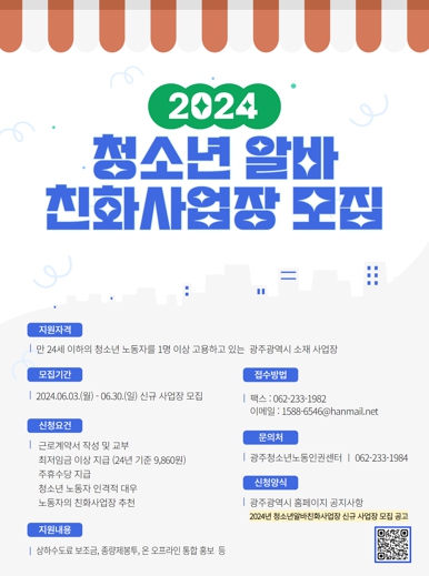 ![]() 광주광역시, 청소년알바 친화사업장 30일까지 모집 |