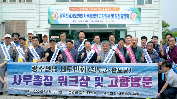 김정우 협의회장은 “휴일임에도 보배로운 섬 진도로 지사께서 직접 찾아와 현장 도정설명회를 열어줘 매우 뜻깊고 큰 환대에 진심으로 감사드린다”며 “광주전남시도민회는 전남도에서 역점 추진하는 전남 사랑애 서포터즈 100만 명 육성에 적극 협력하고, 국립의대 설립과 6월 열리는 전남 세계관광문화대전, 영호남 상생협력 화합 대축전이 성공적으로 개최되도록 적극 지원하겠다”고 말했다.