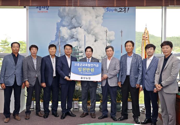 이날 기탁식에는 흥양농협이 참여했으며, 흥양농협은 지난해 교육발전기금 1천만 원 기부에 이어 올해도 1천만 원을 기부해 지역사회에 훈훈한 분위기를 자아냈다.