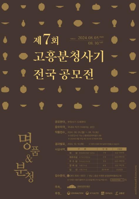 이번 공모전은 고흥분청사기의 전통을 바탕으로 완성도, 창의성, 표현성, 예술성, 역사성에 대한 심사를 통해 총 30명의 수상작을 선정해 발표할 예정이다.