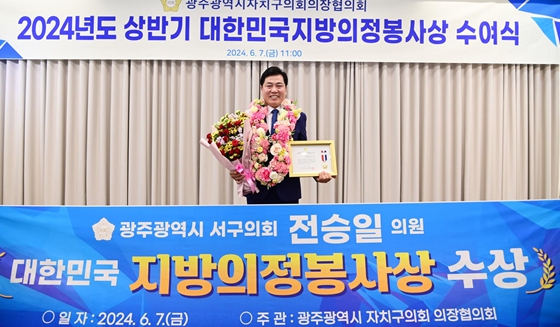 전 의원은 투철한 사명감과 봉사정신으로 지방의정 발전과 주민화합을 위하여 헌신적으로 봉사했을 뿐만 아니라 지역사회 발전에 기여한 공로를 인정받아 상을 수상했다.