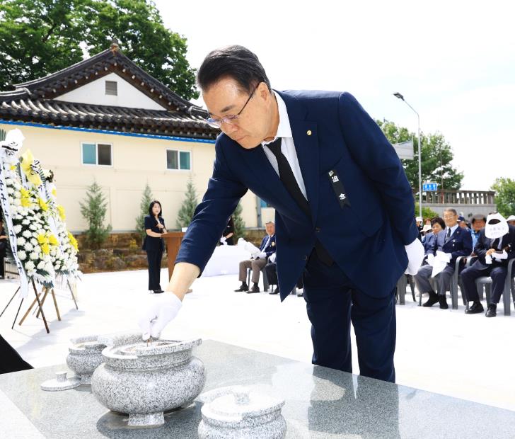 구복규 군수는 추념사를 통해“조국의 평화와 가족·후손을 위해 희생하신 순국선열과 호국영령에 대해 머리 숙여 깊은 경의를 표하며 숭고한 희생과 애국심을 절대 잊지 않도록 노력하겠다”라며, “이분들의 희생과 공로에 끝없는 존경과 예우를 다하여 유가족들께 모든 지원과 노력을 아끼지 않겠다”라고 말했다.