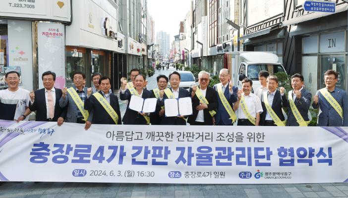 이와 함께 동구는 지난 3일 충장로4가 번영회와 ‘간판 자율관리단’ 협약을 체결해 주민이 중심이 되는 충장로4가 간판 개선 사업을 지속 유지·관리할 계획이다.