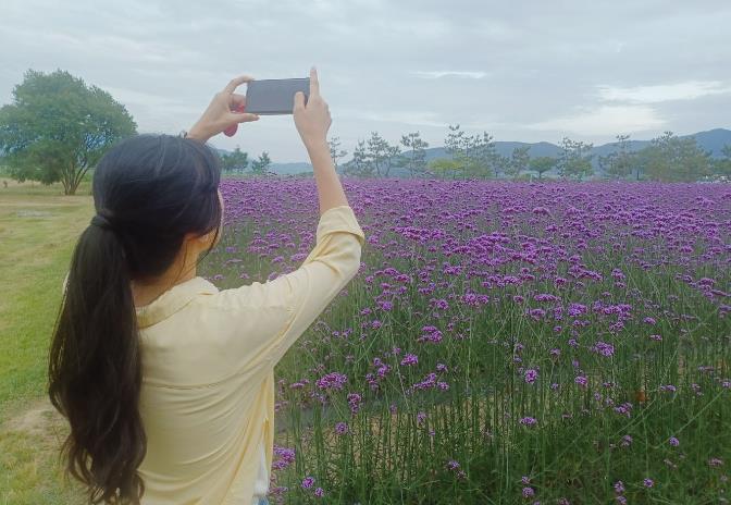 경남 마산에서 아이 둘과 함께 성전면 강진다원 녹차밭 관광을 왔다가 작천면 까치내공원을 우연히 보고 들렀다는 한 관광객은 “이름도 생소한 버들마편초에 푹 빠졌다”며 “보랏빛은 BTS 상징색이라 더 호감이 가고 다시 찾고 싶은 곳”이라고 말했다. 이어 “작은 시냇가와 우산 그늘, 쉼터, 꿈다리, 흔들의자, 야트막한 언덕 등이 곳곳에 있어 마치 유럽의 예쁜 정원에 온 느낌”이라고 덧붙였다.