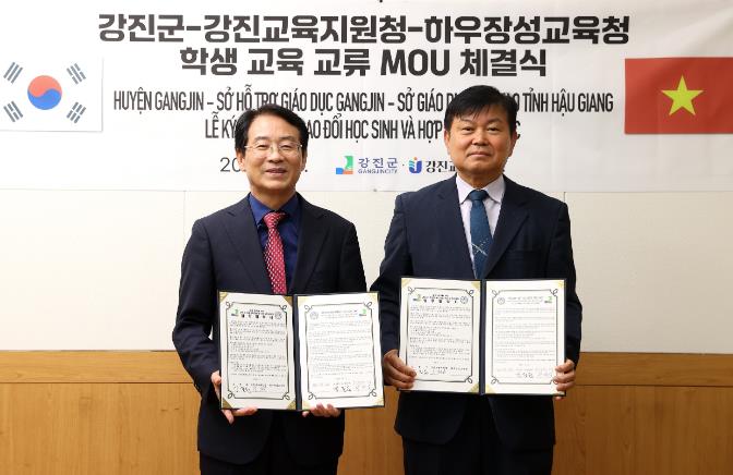 이번 업무협약은 온라인 화상회의로 진행됐으며 강진원 강진군수, 이병삼 강진교육지원청 교육장, 응웬 화이 튀 항 하우장성 교육장이 서명했다.