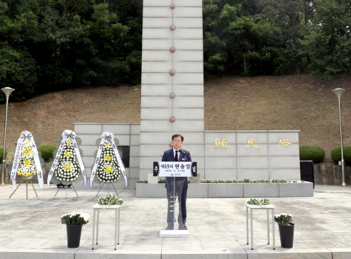 추념행사는 오전 10시에 전국적으로 울리는 사이렌 취명에 맞춰 1분간 묵념을 시작으로 육군 제8332부대 2대대의 조총 발사 및 내빈 헌화와 분향, 추념사, 현충일 노래 제창 순으로 진행됐다.