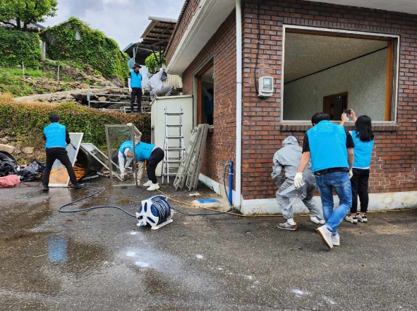 이에 지역 주민들과 지역 봉사 단체는 도배·장판 등 마을회관 수리 봉사활동을 펼쳤다.