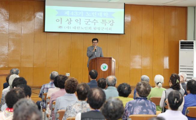 한편, 제43기 함평노인대학은 4월부터 11월까지 매월 2회에서 3회 화요일에 대한노인회 함평군지회에서 열리며, 실버노래교실 및 레크리에이션, 치매 예방 및 건강체조, 교통안전교육 등 다양한 교육과정으로 운영되고 있다.