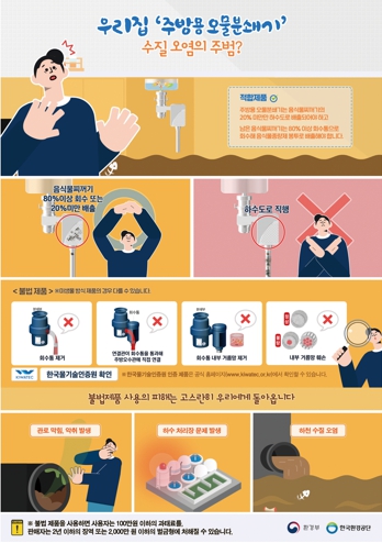 김일곤 물관리정책과장은 “불법 주방용 오물분쇄기 사용은 수질오염을 악화하고 하수처리장의 부하가 증가해 이웃에게 피해를 줄 수 있다”며 “반드시 인증제품만 사용해야 한다”고 말했다.