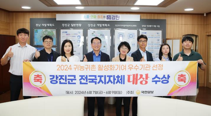 ![]() 강진군이 전국 귀농귀촌 우수 지자체상 ‘종합대상’을 받았다. |