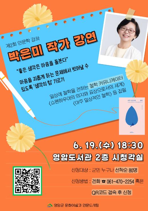 ![]() 영암군 박은미 작가가 전하는 ‘좋은 생각은 마음을 돌본다’ |