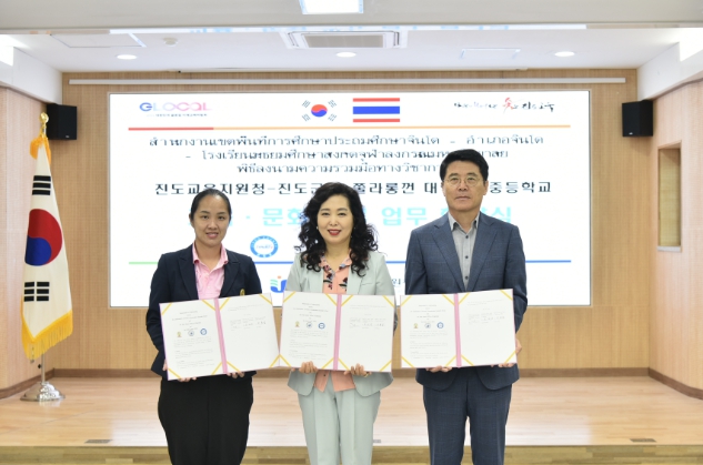 학술협력 협약식에는 대한민국 글로컬 미래교육 박람회 참여를 위해 한국을 방문한 태국 교육관계자와 진도에 거주하고 있는 태국 다문화 가족 등 30여 명이 참석했다.