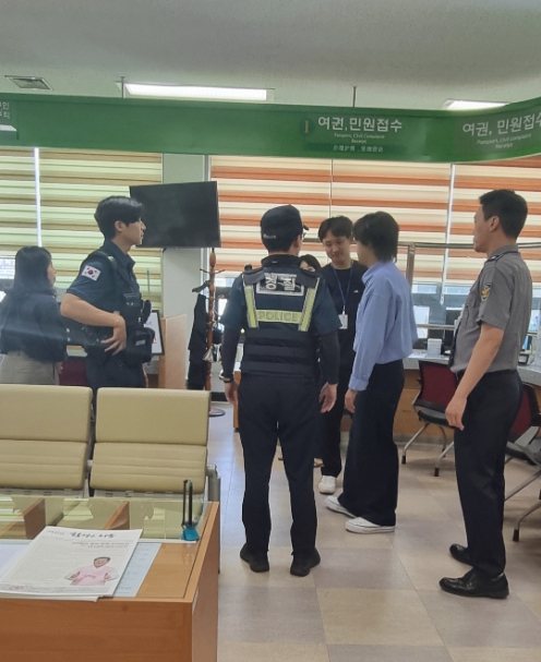 이번 훈련은 민원실 내 민원응대 과정에서 발생가능한 폭언․폭행 등 비상상황에 대비하기 위해 특이민원 상황을 가정하여 진행됐다.