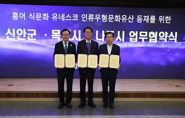 이번 협약으로 홍어잡이, 유통, 음식 등 홍어식문화를 대표하는 지역 간의 협의체를 구성하고, 국가무형유산(공동체 종목) 지정을 위한 자료 공유와 학술연구 등 유네스코 인류무형유산 등재 추진에 적극 협력하기로 했다.