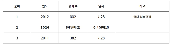 ![]() 역대 500만 관중 돌파 최소 경기 수 순위 |