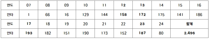 손아섭은 13일(목) KT와의 경기에서 안타 1개를 추가해 안타 기록을 2,496개로 늘렸다. 이로써 2,500안타까지는 4개, 전 LG 박용택이 보유한 통산 최다 안타 기록인 2,504개까지는 8개를 남겨뒀다.