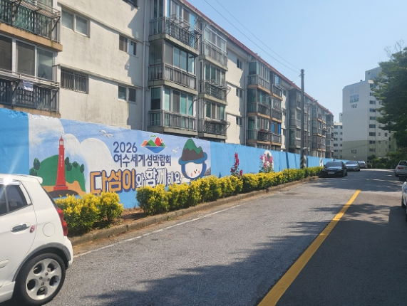 ![]() 여수 르네상스 시민운동 중앙동 실천본부가 최근 고소아파트 담장을 섬박람회 캐릭터 ‘다섬이’로 새단장했다. |