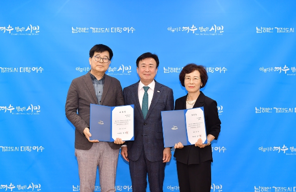 ![]() 사진 왼쪽부터 여수시 시민 옴부즈만 임채성(남), 윤혜옥(여) 위원 |