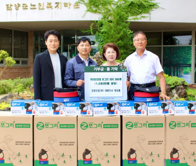 담양군복지재단 이정옥 이사장은 “밭일 등에 허리보호대 쪼그리 의자를 사용하면 근골격계 질환을 예방하는 데 큰 도움이 될 것 같다”라며, “어르신들 삶의 질 향상을 위해 기탁해 준 경향산업에 감사드린다”라고 말했다.