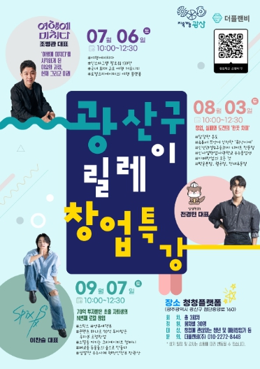 강연은 7월~9월 첫째 주 토요일 오전 10시, 총 3회에 걸쳐 광산구 청청플랫폼(첨단종합사회복지관, 첨단중앙로 160 4층)에서 진행된다.