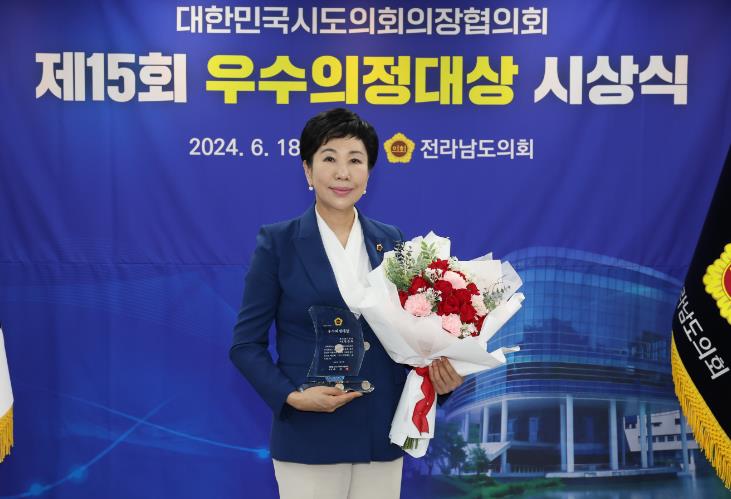 ![]() 한춘옥 전남도의원, 시도의장협의회 우수의정대상 수상 |