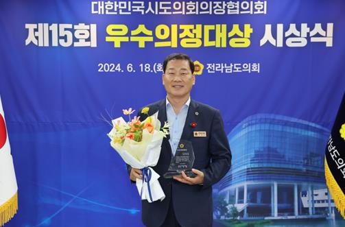 대한민국시도의회의장협의회에서 주관하는 ‘우수의정대상’은 민의를 대변하고 성실한 의정활동으로 지역민 삶의 질 향상에 기여한 공로가 큰 의원에게 수여하는 의미있는 상이다.