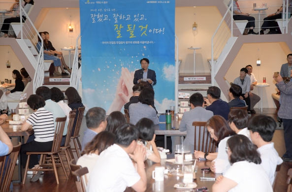강 시장은 “당장 8월부터는 인공지능(AI)을 도입해 당직제가 없어진다. 변화 중 아주 작은 변화일 뿐이고, 시민들에게 열린공간으로 재탄생한 청사 또한 공간의 작은 변화이다”며 “이 작은 변화들로 만족도는 더욱 높아졌다. 이제 광주 전체의 큰 변화가 필요하다”고 강조했다.