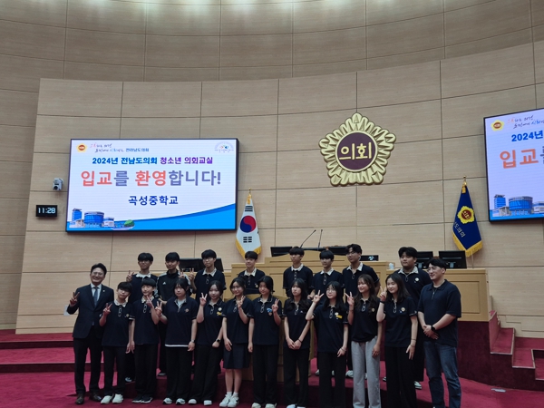 진호건 의원은 곡성중학교 학생들을 맞이하며 “교과서에서만 배운 민주주의의 절차와 과정을 직접 현장에서 체험함으로써 민주 시민 역량을 함양하는 좋은 경험이 되길 바란다”며 “오늘 청소년 의회교실을 바탕으로 곡성군과 전라남도, 나아가서 대한민국의 발전에 기여하는 훌륭한 민주시민으로 성장해 주기를 바란다”고 당부했다.