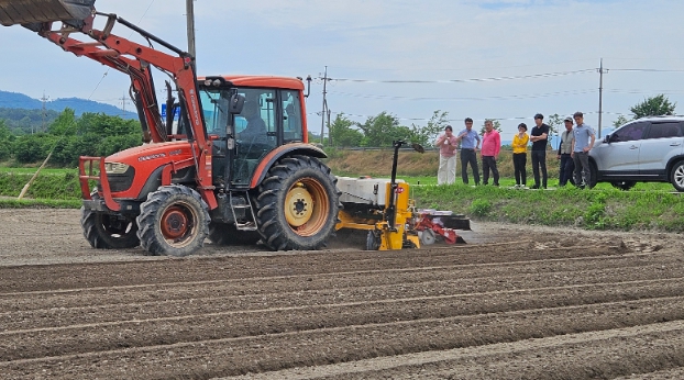 ![]() 강진군 농업기술센터 관계자들이 신품종 검정콩 ‘청자5호’의 파종 현장에서 지도하고 있다. |