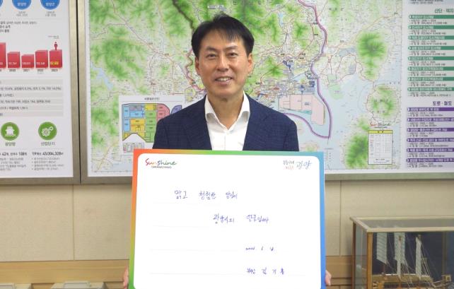 광양시는 공직사회의 청렴 실천 의지 공유와 공직자의 청렴 활동 동참 유도를 위해 지난 4일 정인화 시장을 시작으로 ‘릴레이 청렴 다짐 챌린지’를 추진 중이며, 두 번째 주자로 지명된 김기홍 부시장이 챌린지를 이어 나갔다.