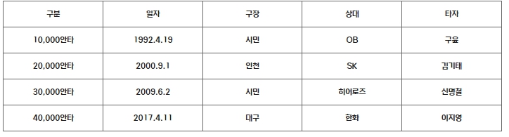 ![]() 삼성 10,000안타 단위 안타 일지 |