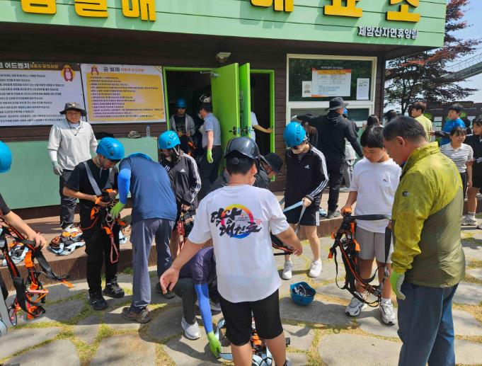 ![]() 신중년 일자리 사업 참여자가 산림휴양체험지원시설에 프로그램 도우미로 활동하고 있는 장면 |