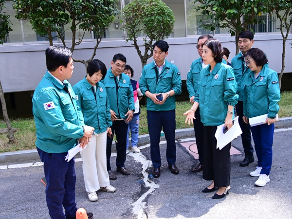 먼저 금호동 아파트 지반침하 현장에서 침하 원인과 피해 현황, 복구 대책 등을 청취한 후, 이어 풍암동 옹벽 벽화 조형물 설치 구간으로 이동하여 벽화 사업 추진 현황과 향후 관리 계획을 점검했다.