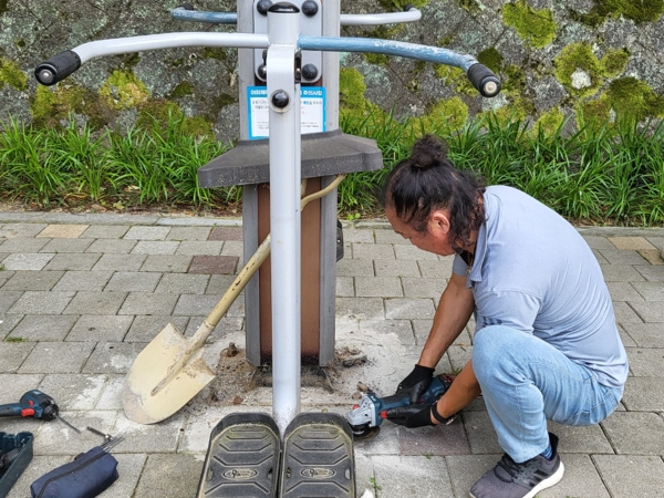 도심에서는 야외 운동기구 점검 및 보수 작업을 대대적으로 진행한다.