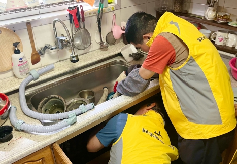 월곡1동 지사협 위원들은 이날 지역 내 혼자 사는 어르신 40세대를 방문, 오랫동안 청소하지 않아 음식물 찌꺼기가 쌓이고 곰팡이가 핀 싱크대 배수관을 직접 청소하고 배수관을 교체했다.