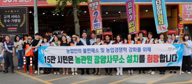 광양시는 농관원 광양사무소 설치를 위해 1만5천명을 목표로 온라인과 오프라인 서명운동을 함께 진행하고 있으며, 온라인서명은 광양시청 홈페이지에서 오프라인 서명은 읍면동사무소와 농협을 방문해 각각 참여할 수 있다.