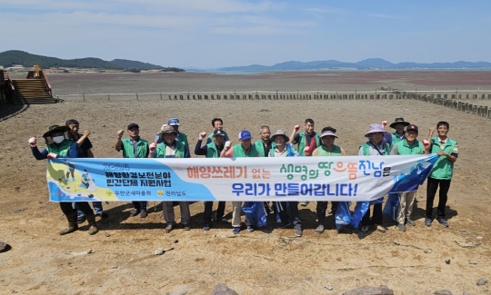 ![]() 6월 19일 무안황토갯벌랜드에서 환경정화활동을 하는 해제면 새마을협의회 회원들 |