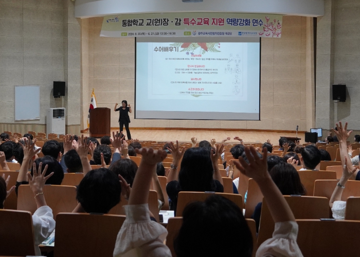 21일 시교육청에 따르면, 이번 연수는 특수교육대상학생의 효과적인 교육지원을 위해 통합학교 관리자의 역량을 키우고자 마련했다. 또 학교내 장애인식개선과 인권존중, 장애공감 문화 조성을 돕는 데도 목적을 뒀다.