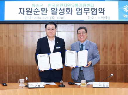이번 협약은 재활용 시책을 적극 추진하는 화순군과 자원순환분야에서 전문 역량을 가지고 있는 유통지원센터 간 자원순환 활성화를 위해 상호협력을 체결했다.