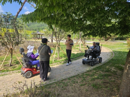 ![]() 현장점검 : 화순군 관계자가 장애인일자리 참여 대상자에게 안전교육을 실시하는 모습 |