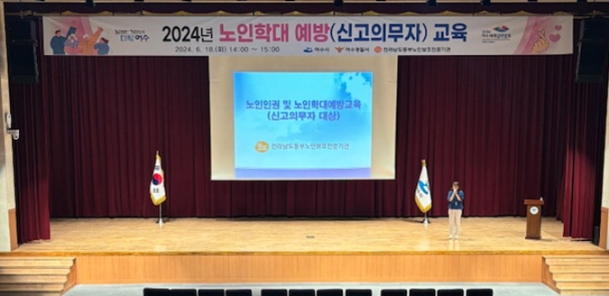 ![]() 여수시가 지난 18일 여수문화홀에서 노인복지시설 종사자를 대상으로 노인학대 예방 교육을 실시했다. |