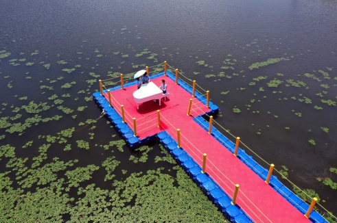 ![]() 강진군 강진읍 보은산 고성제에 마련된 ‘물 위의 피아노’, 이번 강진수국길축제의 핵심 콘텐츠다. |