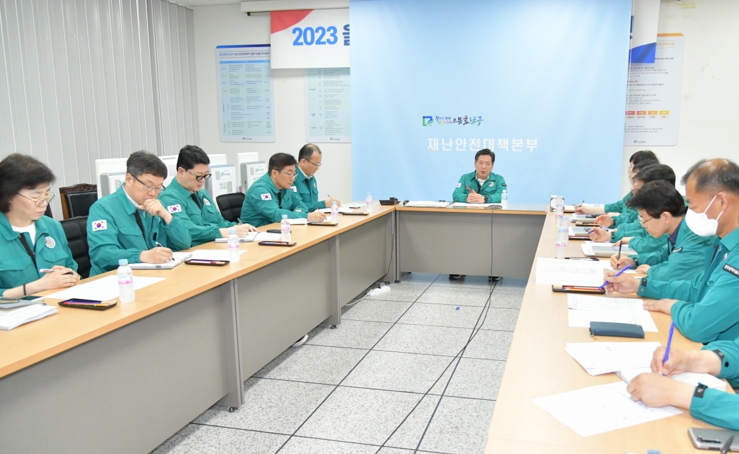 구청 9층 재난종합 상황실에서 열린 비상 소집 회의에는 안전총괄과를 비롯해 건설과, 건축과 등 재난안전 관련 13개 부서장이 참석했다.