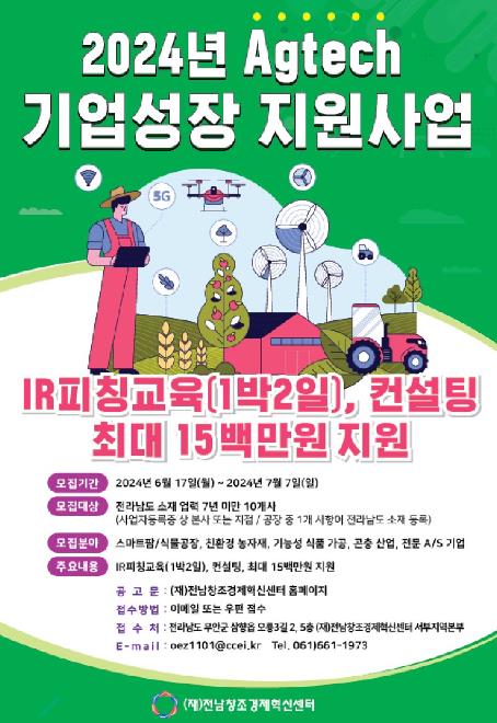 전남도는 스마트팜뿐만 아니라 영농과 유통 데이터를 활용하거나 기존의 농기구에 자율주행 등 첨단 기술을 접목하는 관련 산업이 확장해 나가고 있는 점을 주목해, 전남창조경제혁신센터와 함께 애그테크 산업 생태계 조성을 위해 올해 처음으로 지원사업을 도입했다.