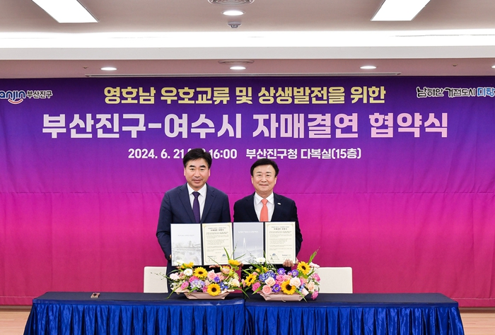 이날 정기명 시장은 “이번 자매결연을 통해 두 지자체가 더욱 활발히 교튜해 더 큰 시너지를 발휘할 것으로 기대한다”며 “부산진구가 2026여수세계섬박람회에도 든든한 파트너가 되어 주시기를 바란다”고 말했다.