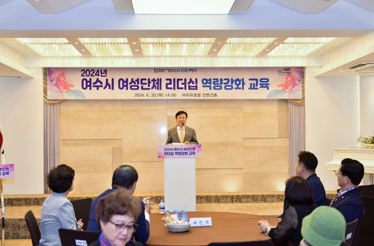![]() 정기명 여수시장이 지난 20일 마띠유호텔 컨벤션홀에서 열린 ‘여수시 여성단체 리더십 역량강화 교육’에서 인사말을 하고 있다. |