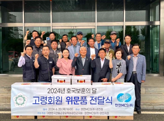 대한민국 전몰군경유족회 강진군지회와 한전MCS(주) 강진지점은 지난 해 6월 보훈 취약계층 물품 지원 및 위로등에 협력할 것을 약속하는 협약식을 갖고 위문품을 전달했으며 이번 행사를 통해 국가유공자의 예우에 더욱 앞장서겠다는 포부를 밝혔다.