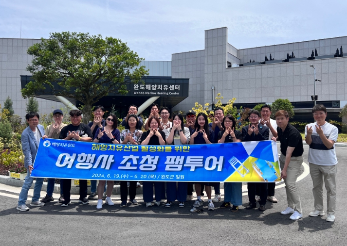 팸 투어에 참가한 여행사 관계자 18명은 완도해양치유센터와 해양기후·해양문화치유센터, 약산 해안 치유의 숲 등을 방문했다.